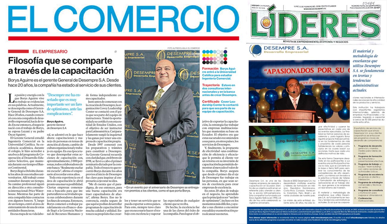Actualmente es Gerente General de Desempre S.A., donde con mucho éxito en Ecuador ha contribuido con el cambio de cultura organizacional y mejoramiento continuo de importantes empresas como Claro, Banco Mundial, Bureau Veritas, Pronaca, Ministerio del Ambiente, Citibank, American Airlines, Parque Nacional Galápagos, Grupo Farma, Lloyds Bank, Comercial Kywi, Wartzila, Sabre, entre otras.