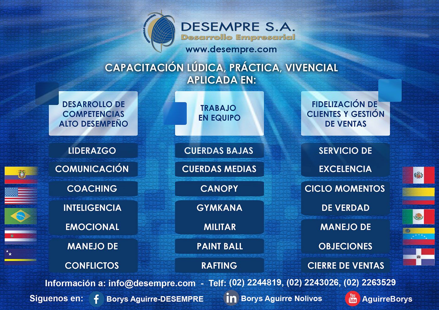 Con más de veinte años de experiencia como consultor corporativo y capacitador internacional, ha desarrollado programas de capacitación en México, República Dominicana, Venezuela, Curazao, Colombia, Perú y Ecuador.
